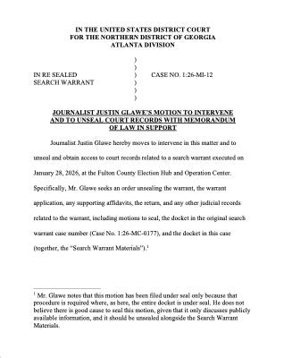 In a federal court filing this afternoon, we're seeking the Justice Department's affidavit that led to the unprecedented seizure of Georgia election…