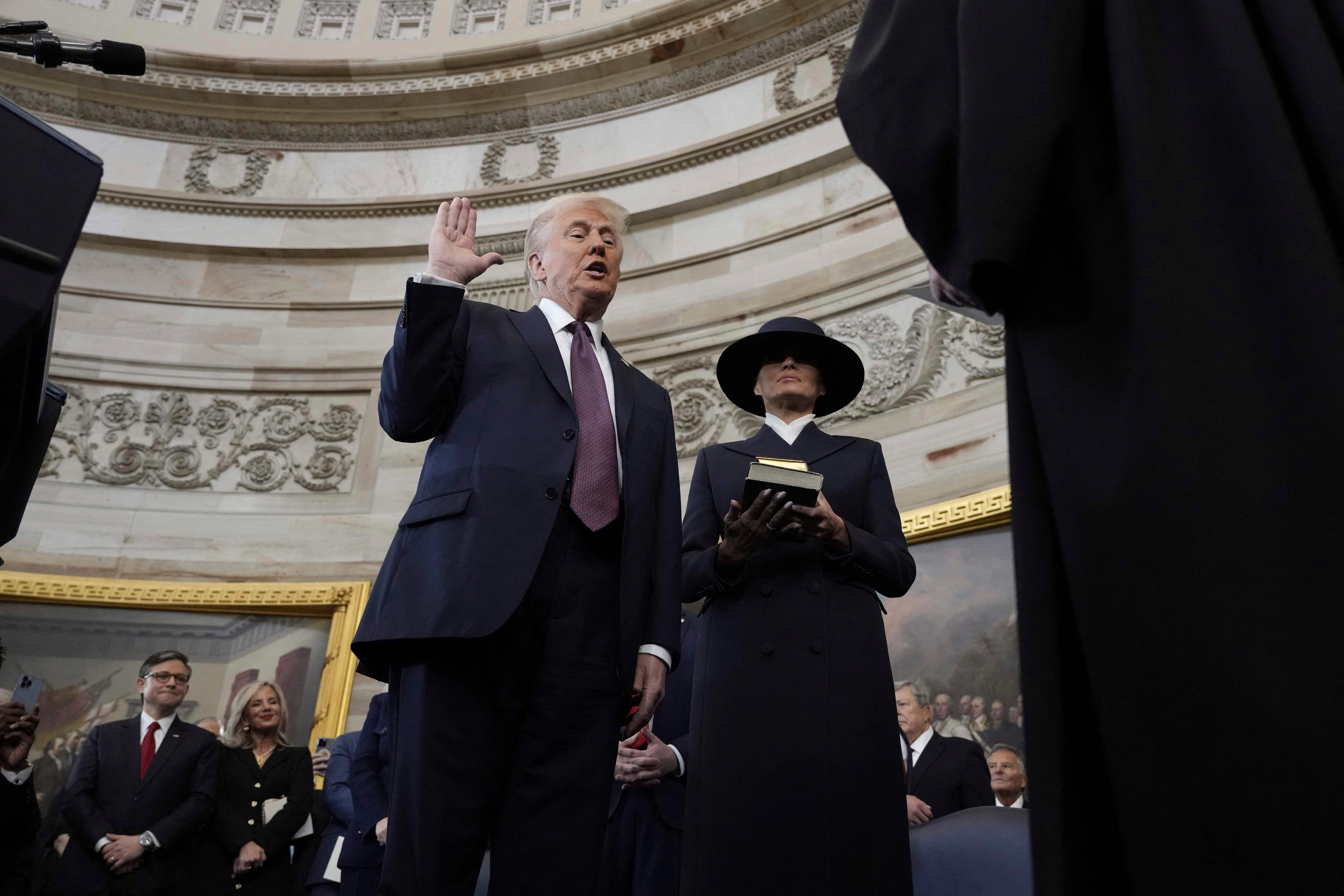 “I was saved by God to make America great again,” Trump said in his official inaugural address, one of three sets of remarks he gave throughout the day and evening.